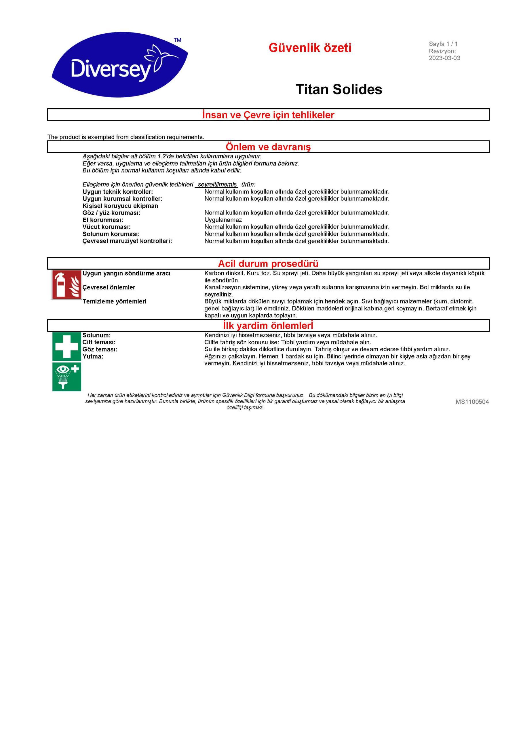 Ürün sipariş sayfasına geri dön DORİN STORE dorin.tr'ye geri dön Diversey Solides Hijyenik El Yıkama Sıvısı 20L MSDS Güvenlik Bilgi Formu ve Güvenlik Özeti Stok Kodu: 70021391 Güvenlik Özeti Ürün sipariş sayfasına geri dön