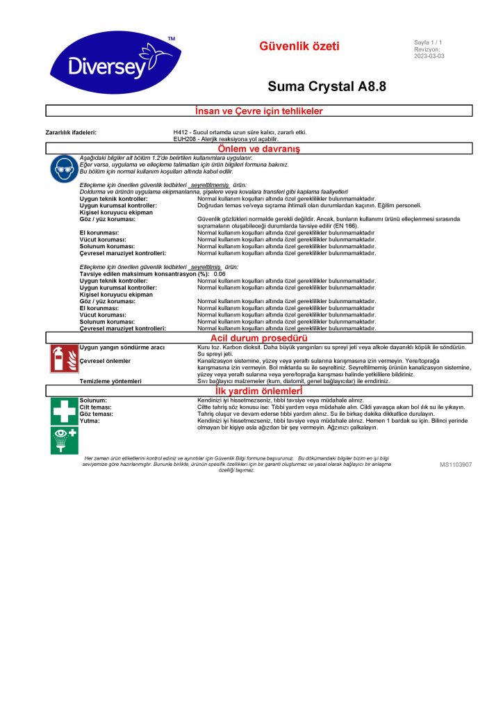 Ürün sipariş sayfasına geri dön DORİN STORE dorin.tr'ye geri dön Diversey Suma Crystal A8.8 Sert Sular İçin Bulaşık Makinesi Parlatıcısı 20 L MSDS Güvenlik Bilgi Formu ve Güvenlik Özeti Stok Kodu: 70023927 Güvenlik Özeti Ürün sipariş sayfasına geri dön