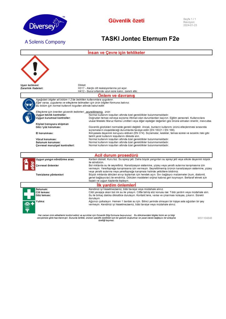 Ürün sipariş sayfasına geri dön DORİN STORE dorin.tr'ye geri dön Diversey Taski Jontec Eternum Akrilik Cila F2e 5L MSDS Güvenlik Bilgi Formu ve Güvenlik Özeti Stok Kodu: 101109114 Güvenlik Özeti Ürün sipariş sayfasına geri dön