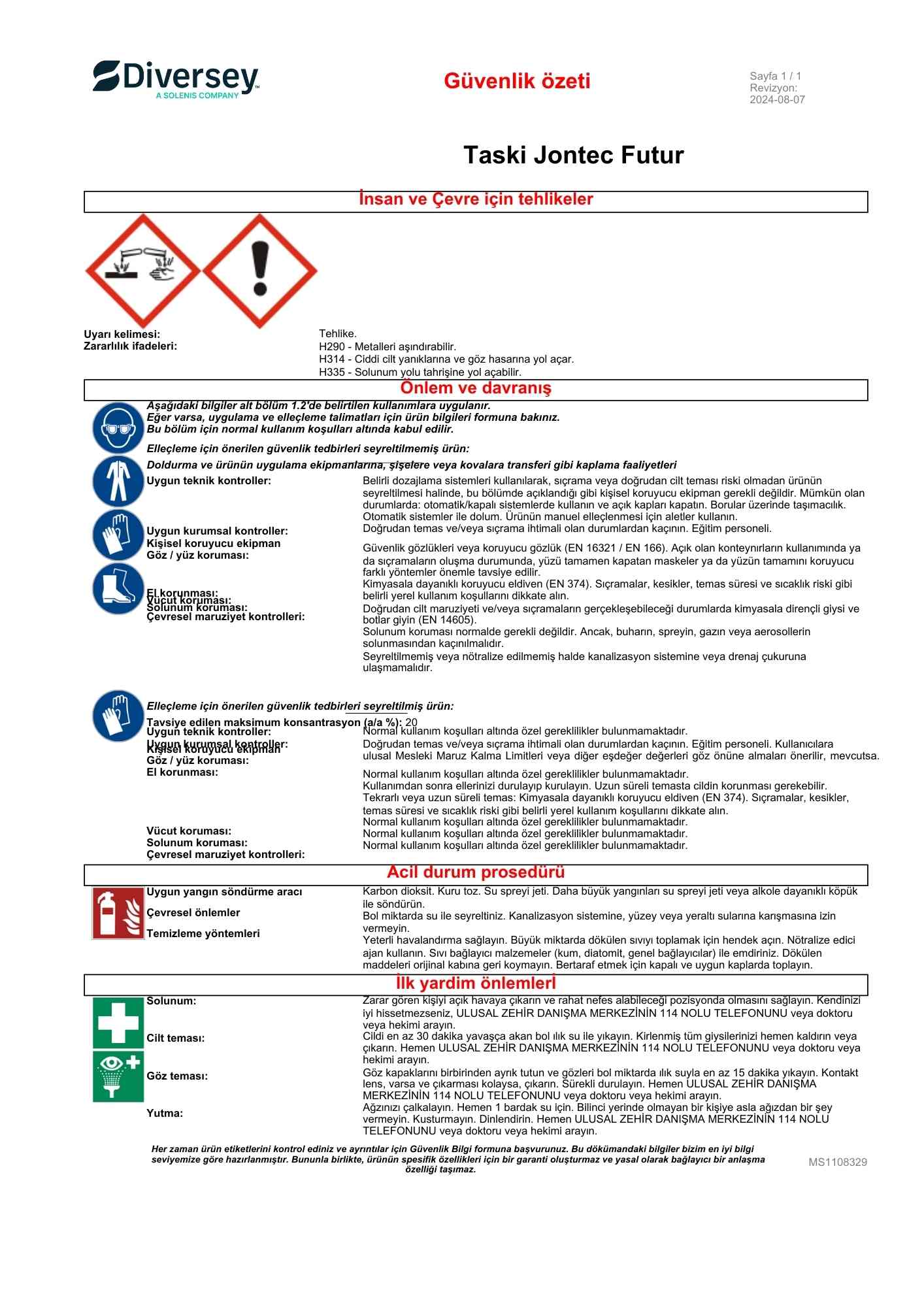 Ürün sipariş sayfasına geri dön DORİN STORE dorin.tr'ye geri dön Diversey Taski Jontec Futur Kir ve Cila Sökücü 20 L MSDS Güvenlik Bilgi Formu ve Güvenlik Özeti Stok Kodu: 70024525 Güvenlik Özeti Ürün sipariş sayfasına geri dön