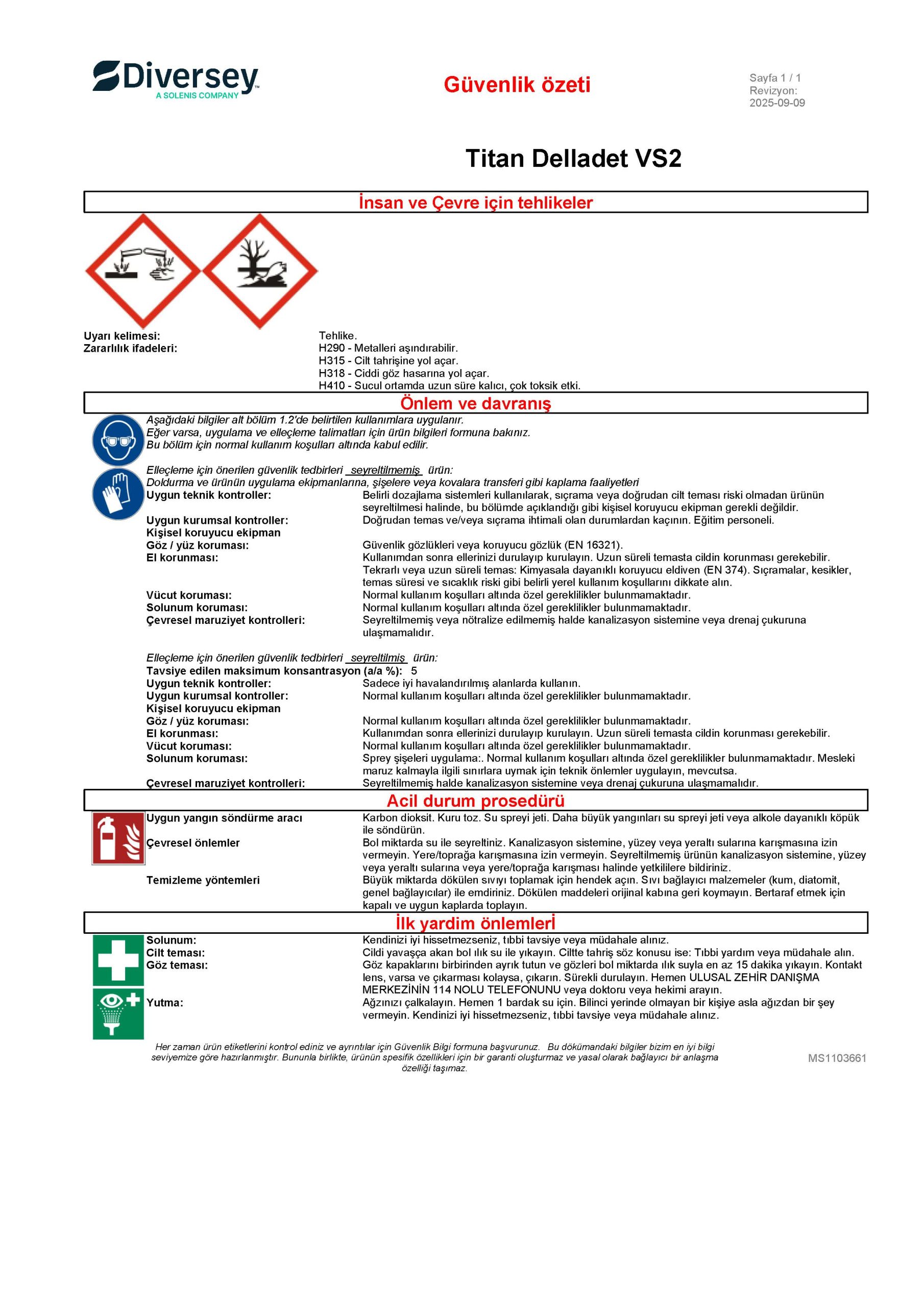 Ürün sipariş sayfasına geri dön DORİN STORE dorin.tr'ye geri dön Diversey Titan Delladet VS2 20L/21 Kg MSDS Güvenlik Bilgi Formu ve Güvenlik Özeti Stok Kodu: 7510583 Güvenlik Özeti Ürün sipariş sayfasına geri dön