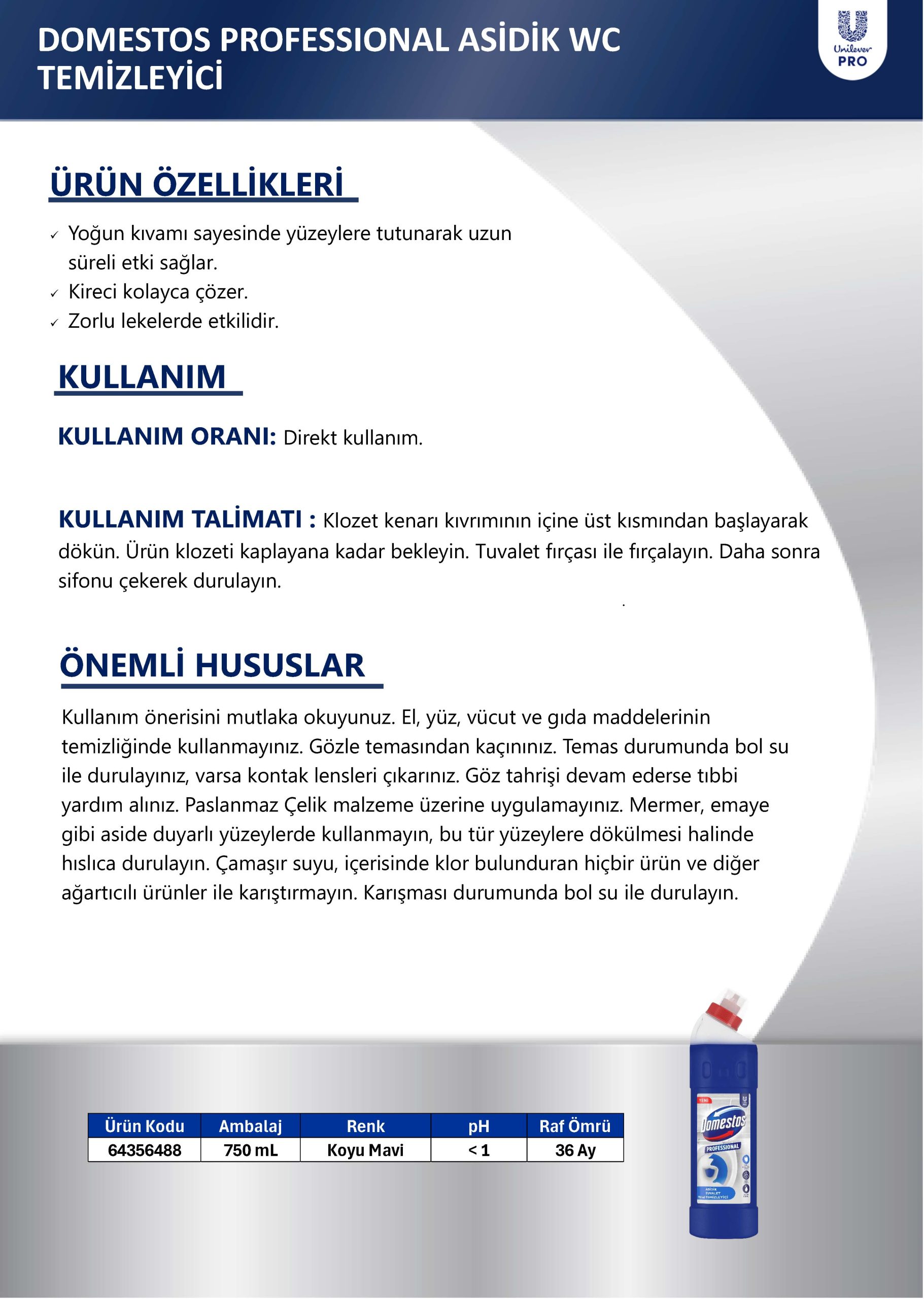 Ürün sipariş sayfasına geri dön DORİN STORE dorin.tr'ye geri dön Domestos Professional Tuvalet Temizleyici 750 Ml U Pro Wc Temizleyici TDS Güvenlik Bilgi Formu ve Güvenlik Özeti Stok Kodu: 64356488 Güvenlik Özeti Ürün sipariş sayfasına geri dön