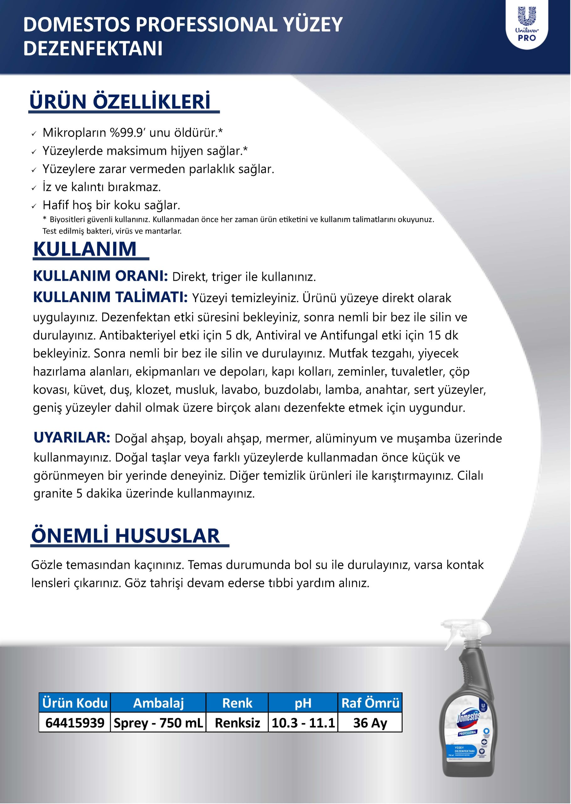Ürün sipariş sayfasına geri dön DORİN STORE dorin.tr'ye geri dön Domestos Professional Yüzey Dezenfektanı 750 Ml U Pro MSDS Güvenlik Bilgi Formu ve Güvenlik Özeti Stok Kodu: 64415939 Güvenlik Özeti Ürün sipariş sayfasına geri dön