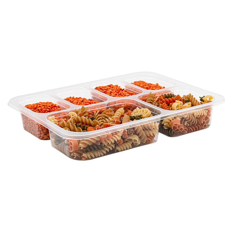Mikrodalga uyumlu Gıda Kapları, bölmesiz modellerden 2 bölmeli, 3 bölmeli, 4 bölmeli, hatta 7 bölmeli profesyonel menü kaplarına kadar pek çok seçeneğe sahiptir. Bu kaplar yalnızca sıcak yemeklerde değil, aynı zamanda soğuk ürünlerin paket servisinde de kullanılmaktadır.